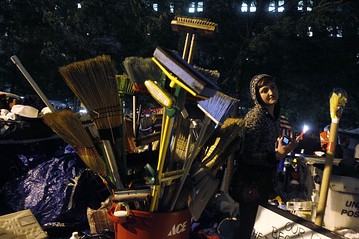 Congratulations to the Occupy Wall Streeters for making weapons out of mops and brooms and holding off the Bloomberg eviction forces!  A major victory!  I wonder when was the last time Bloomberg held a broom–probably so long ago he couldn’t conceive of such a strategy of resistance.