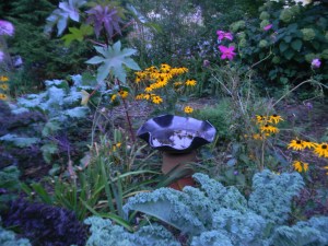 On this blue moon evening, I pay loving homage to the white hydrangeas glowing in the dusky interlude between sunset and moonrise. The perky round sunflowers, the curly purple kale standing stiff and tall in my garden, the pulsing background chorus of crickets—I gather them round in a loving embrace and give thanks for this quiet blue moment, however long it may last.